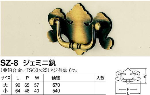 シロクマ 白熊印・SZ-8 ジェミニかん 小 (家具引き出し金具 Swing Handle) 取寄せ品につき、返品・交換できませんのでご注意ください。 商品価格:415円 レビュー件数:2件 レビュー平均:5 購入する